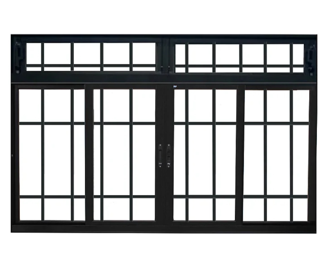 JANELA DE CORRER 4 FOLHAS 2 FIXAS COM BANDEIRA COM GRADE MODELO JBG