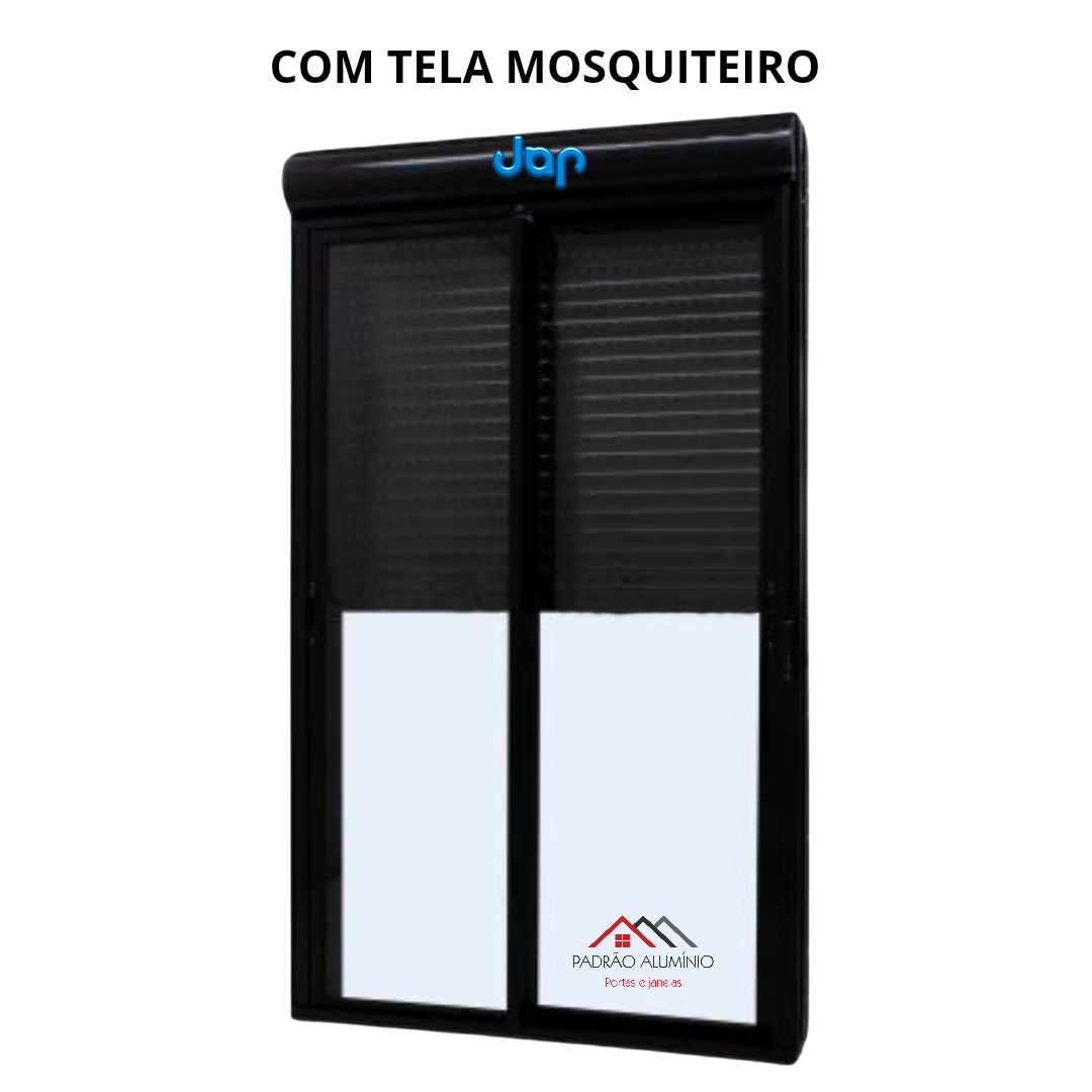 PORTA COM PERSIANA INTEGRADA 2 FOLHAS MÓVEIS COM FECHO CONCHA ACIONAMENTO MANUAL COM TELA MOSQUITEIRO DE CORRER - MODELO PML.TL
