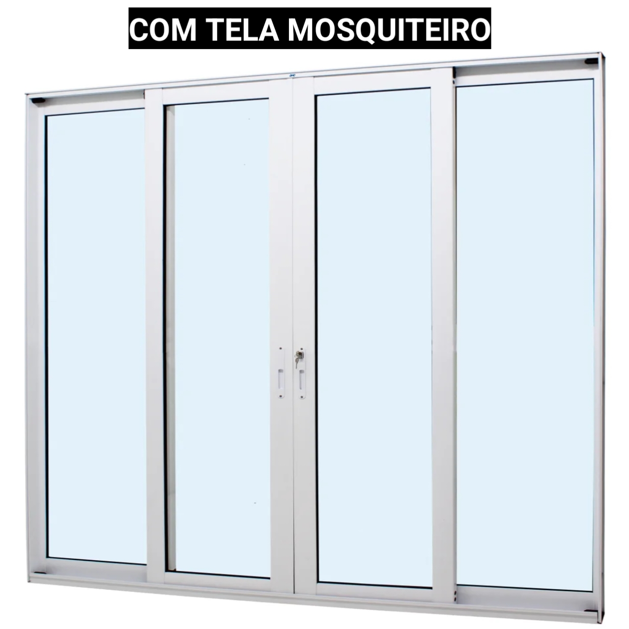 PORTA DE CORRER 4 FOLHAS 2 FIXAS COM FECHADURA COM TELA MOSQUITEIRO DE CORRER - MODELO PC4.TL